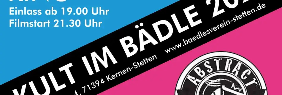 Am 14. und 15. Juli findet das diesjährige KULT IM BÄDLE statt! Am Freitag Abend präsentieren wir ab 21 Uhr (Einlass ab 19:30 Uhr) den Film CONTRA mit den Hauptdarstellern Nilam Farooq und Christoph Maria Herbst. Am Samstag sorgt dann die Abstract Band für musikalische Unterhaltung (Einlass ab 18:30 Uhr) Wir brauchen dringend noch ein …